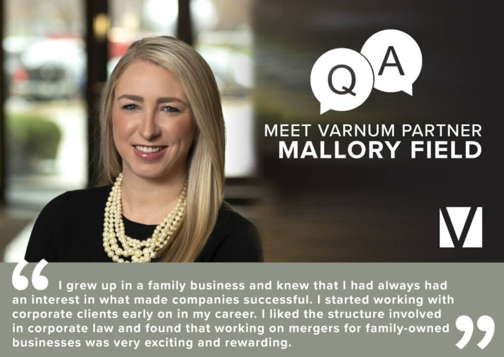 Newly-elected partner Mallory Field is a corporate and financial services attorney based in the Novi office. Her practice includes working with startup companies, corporate governance, M&A, private offerings and other commercial transactions.