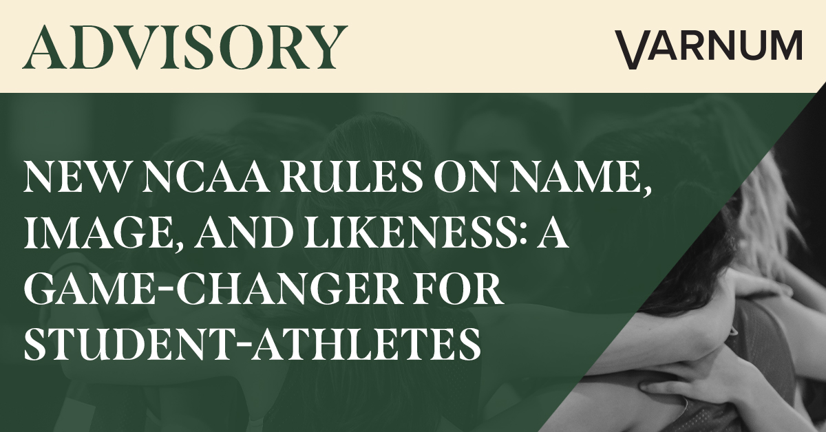 Both the proposed rules and the adopted rules represent an ongoing shift in the NCAA’s approach to NIL, with NCAA President Charlie Baker recently proposing rules that would permit Division I schools to pay student athletes. In light of these ongoing changes, Varnum’s NIL Team will continue to monitor these efforts.